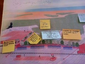 Wendy van Kessel, eveneens van Urhahn, presenteerde als eerste aanzet een aantal kansen in het gebied. Van het meer zichtbaar maken van sport op ‘afgesloten’ binnen-locaties, tot het openstellen van het terras van de sportclub voor fietsers en het inzetten van ‘het water’ als beweegruimte. Aan de deelnemers van het symposium werd gevraagd deze kansenkaart aan te vullen én aan te geven welke gebieden/ideeën zij als kansrijk zagen. Hier volgden vijf onderwerpen uit die in groepen verder werden doorgesproken om tot een eerste aanzet voor concretisering te komen (zie onder).