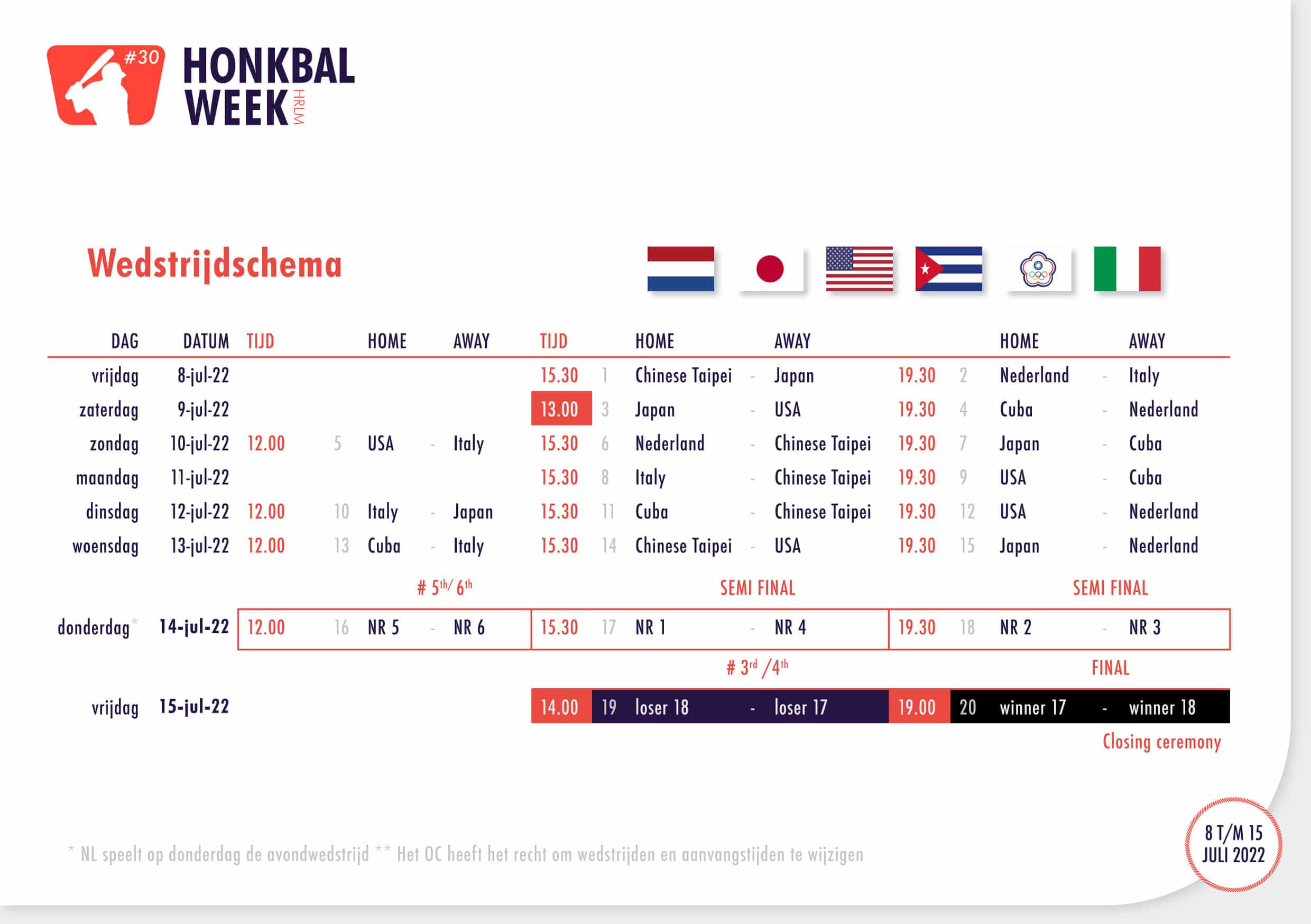 Voor tickets: www.honkbalweek.nl